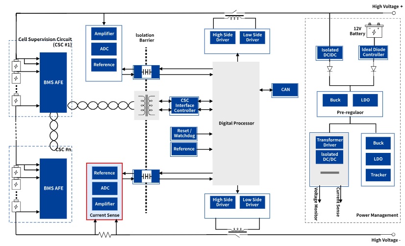 随着新能源汽车与储能产业的快速崛起,电池管理系统(BMS)作为动力电池的“大脑”,承担着电池参数监测、状态评估、充放电控制、安全保护等核心职能,直接决定电池的安全性、可靠性与使用寿命。3PEAK思瑞浦作为国内高性能模拟芯片领军企业,深耕电池管理领域,依托完善的车规级与工业级芯片产品矩阵,整合自主研发的运算放大器、模数转换器、比较器、驱动器、电源开关、CAN收发器等核心器件,打造出高可靠、高精度、高适配的3PEAK思瑞浦电池管理系统(BMS)芯片应用方案,全方位满足新能源汽车、储能系统等场景的严苛需求,彰显3PEAK思瑞浦在模拟芯片领域的技术实力与行业影响力[6]。